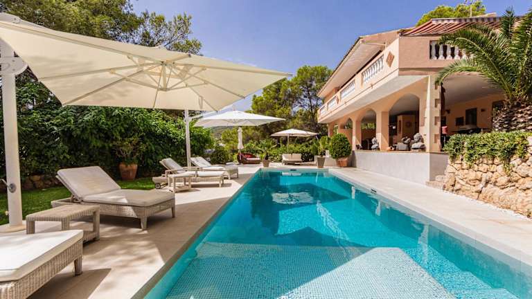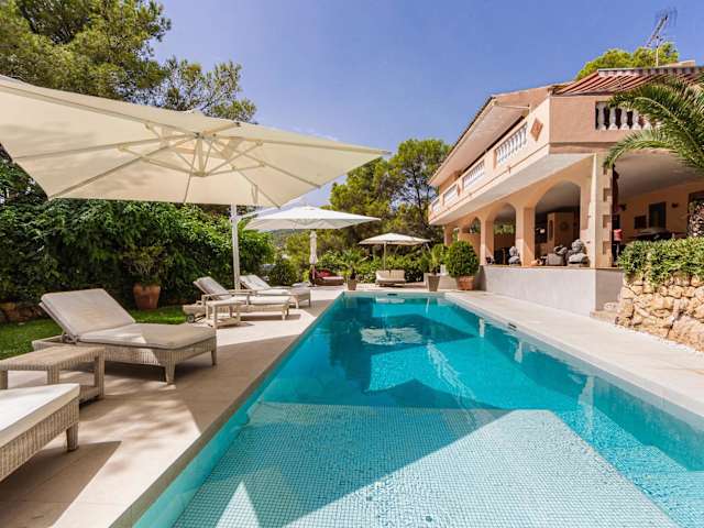 Die Villa Es Pont bietet Übernachtungsmöglichkeiten für bis zu 10 Personen und verfügt über eine heimelige Atmosphäre mit einem Aussenpool, einem Garten und einer Gemeinschaftslounge. Kostenfreies Wifi ist ebenfalls verfügbar, und die Gäste können den Blick auf das Meer sowie die Berge geniessen.