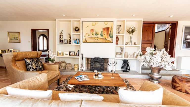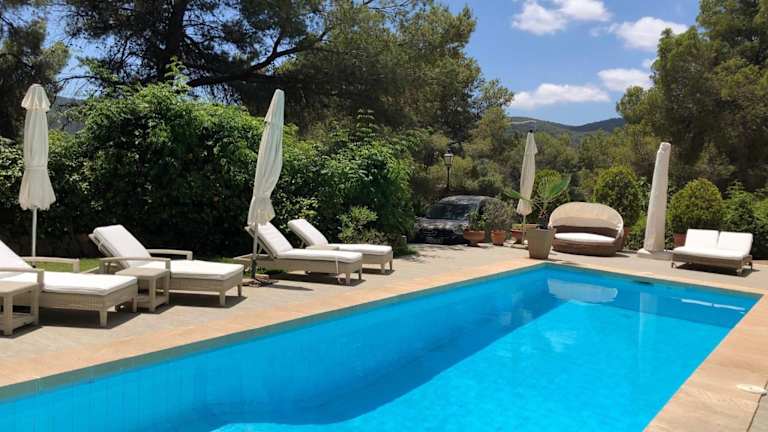 Die Villa umfasst 6 Schlafzimmer, ein Wohnzimmer sowie eine voll ausgestattete Küche mit Kühlschrank und Kaffeemaschine. Es gibt 4 Badezimmer mit Bidet und Dusche. Ausserdem sind eine Klimaanlage, ein Flachbild-TV mit Satellitenkanälen, eine Spielekonsole und ein DVD-Player vorhanden. Die Gäste können eine Terrasse mit Gartenmöbeln und eine Feuerstelle im Freien nutzen.
