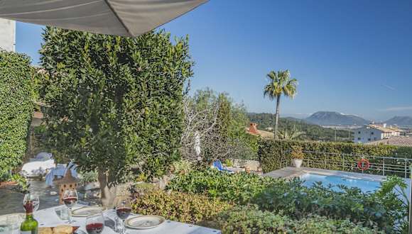 Die Unterkunft Villa Es Puig ist ein heimeliges Ferienhaus mit Gartenblick. Sie bietet Übernachtungsmöglichkeiten mit einem Balkon und einer Kaffeemaschine sowie einem Pool und einer Terrasse mit Stadtblick. Kostenloses Wifi steht zur Verfügung.