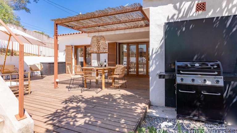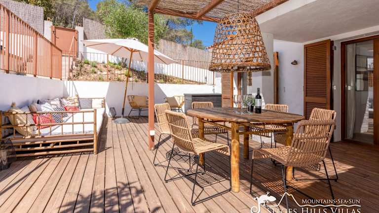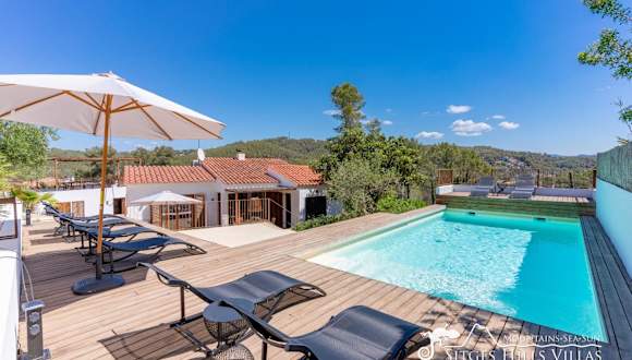 Die Villa verfügt über 4 Schlafzimmer, ein gemütliches Wohnzimmer mit TV, eine gut ausgestattete Küche mit Kühlschrank und Geschirrspüler sowie 3 Badezimmer mit Dusche. Eine Terrasse mit Bergblick ergänzt die Bequemlichkeit der Unterkunft.