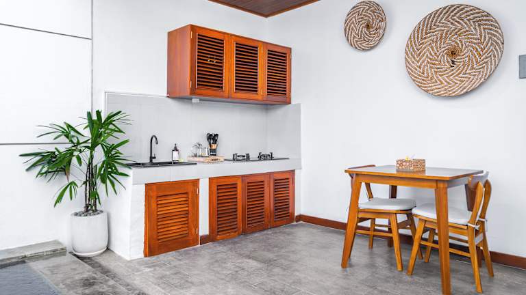 Die Villa verfügt über 1 Schlafzimmer, ein Wohnzimmer und eine voll ausgestattete Küche mit Kühlschrank. Ein Badezimmer mit Bidet und kostenlosen Pflegeprodukten ist ebenfalls vorhanden. Handtücher und Bettwäsche werden bereitgestellt. Die Villa ist klimatisiert.