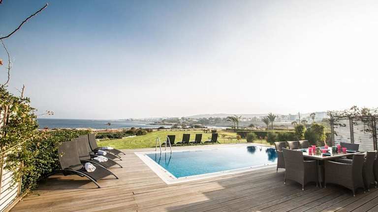 Die Villa Fig Tree Bay Frontline liegt in Protaras, nur 500 Meter vom Strand Fig Tree entfernt. Der Nationalpark Kap Greco befindet sich in einer Entfernung von 5,2 km. Der nächstgelegene Flughafen, Larnaka, ist 54 km entfernt.