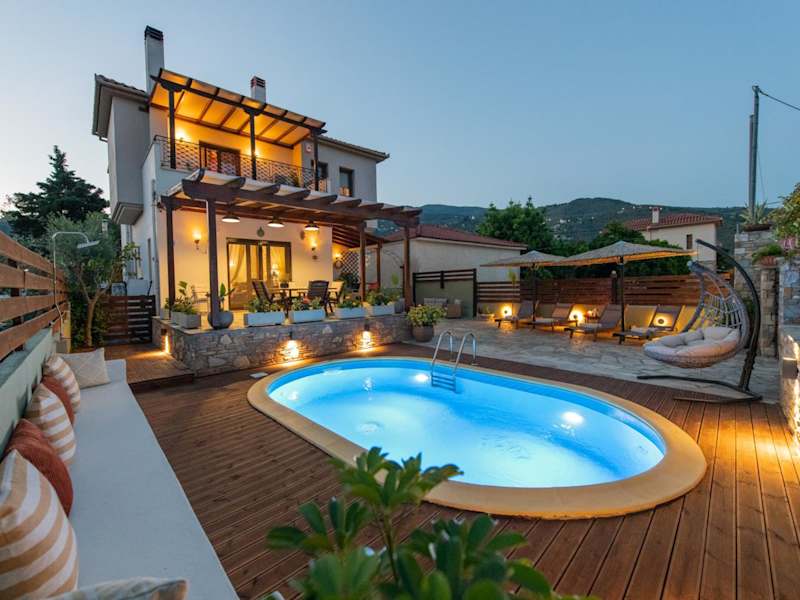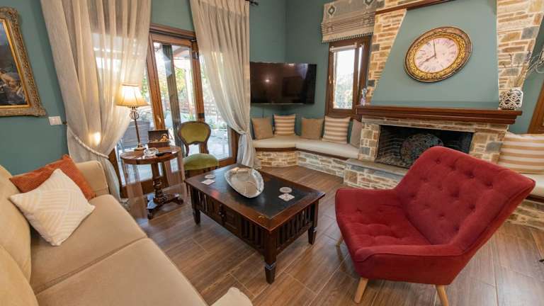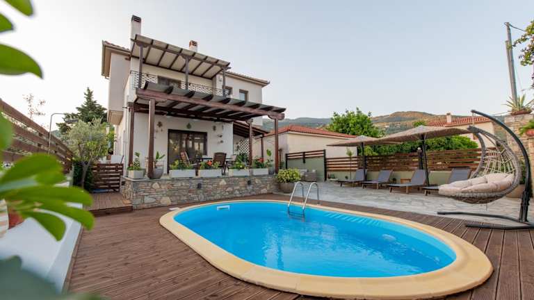 Die Villa Filyra befindet sich in Kato Gatzea, nur 100 Meter vom Strand Paralia Sikia entfernt. Die Umgebung bietet vielfältige Möglichkeiten für Skifahren und Velofahren. Die Lage ist ideal für Gäste, die die Natur und das Meer schätzen.