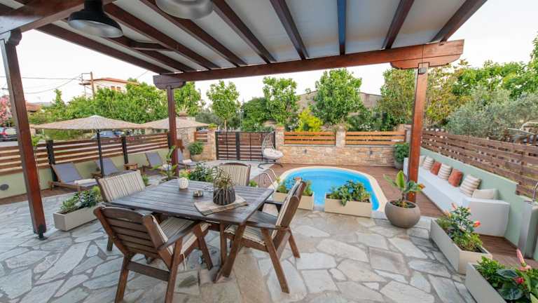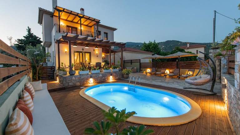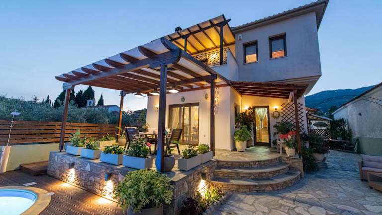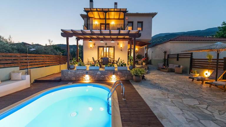 Die Villa Filyra zeichnet sich durch einen Aussenpool, einen heimeligen Garten und eine einladende Terrasse aus. Es stehen 4 Schlafzimmer sowie ein Wohnzimmer zur Verfügung. Die Unterkunft ist bestens ausgestattet und eignet sich sowohl für Familientreffen als auch für entspannende Ferien mit Blick auf das Meer.