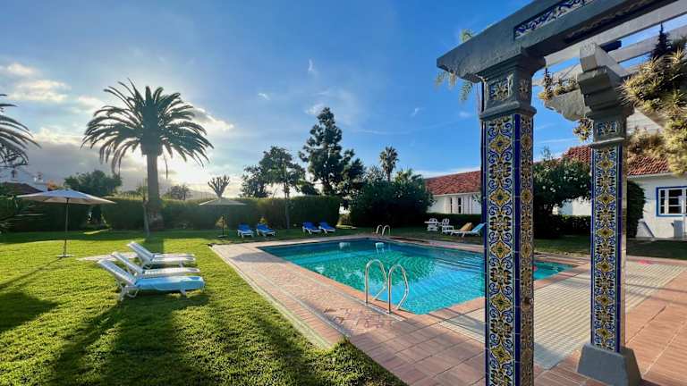 Die Unterkunft Villa Finca El Drago bietet zahlreiche Annehmlichkeiten, darunter kostenloses WLAN, einen Garten mit einem heimeligen Aussenpool und Zugang zu einer Sauna. Die Terrasse bietet einen schönen Ausblick auf den Garten.