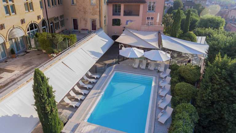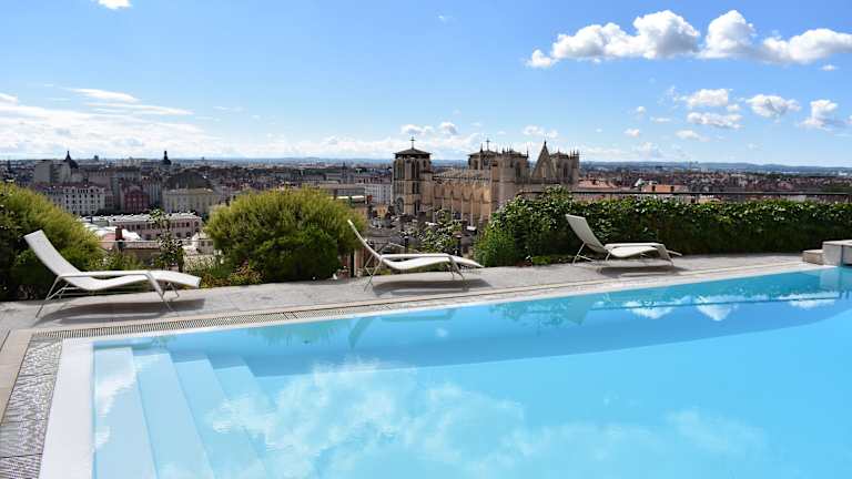 Das Hotel befindet sich in erhöhter Lage auf dem Fourvière Hügel und bietet eine atemberaubende Aussicht auf die Stadt Lyon sowie die Flüsse Rhône und Saône. Bei gutem Wetter können die Gäste bis zu den Alpen blicken. Die nächsten öffentlichen Verkehrsmittel, Einkaufs- und Unterhaltungsmöglichkeiten sind nach ca. 500 m erreichbar. Das Stadtzentrum liegt etwa 2 km entfernt.