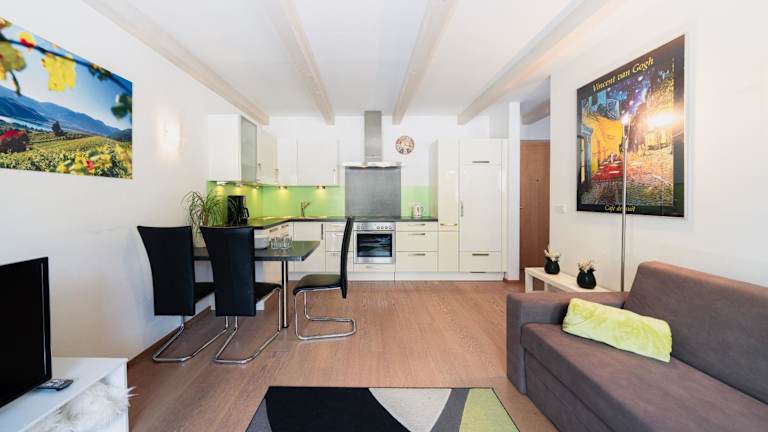 Die Ferienwohnung verfügt über ein Schlafzimmer, ein Wohnzimmer mit einem Satelliten Flachbild-TV, eine gut ausgestattete Küche und ein Badezimmer mit einem Bidet und einer Dusche. Handtücher und Bettwäsche werden zur Verfügung gestellt. Es gibt einen Aufzug in der Unterkunft sowie einen Privatparkplatz vor Ort und kostenfreies WiFi.