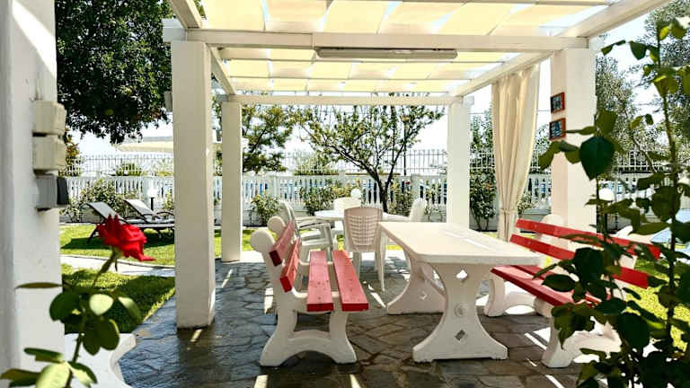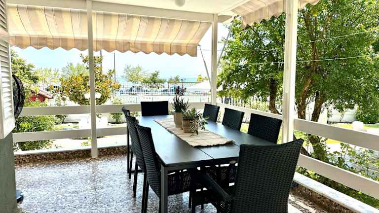 Die Villa Fofo ist eine schöne, direkt am Meer gelegene Villa mit einem grosszügigen Garten von 650 m2. Sie bietet eine Terrasse und einen Balkon mit Meerblick. Die Unterkunft ist mit Klimaanlage ausgestattet und bietet eine ruhige, kinderfreundliche Umgebung. Parkiermöglichkeiten sind kostenlos auf dem Grundstück verfügbar.