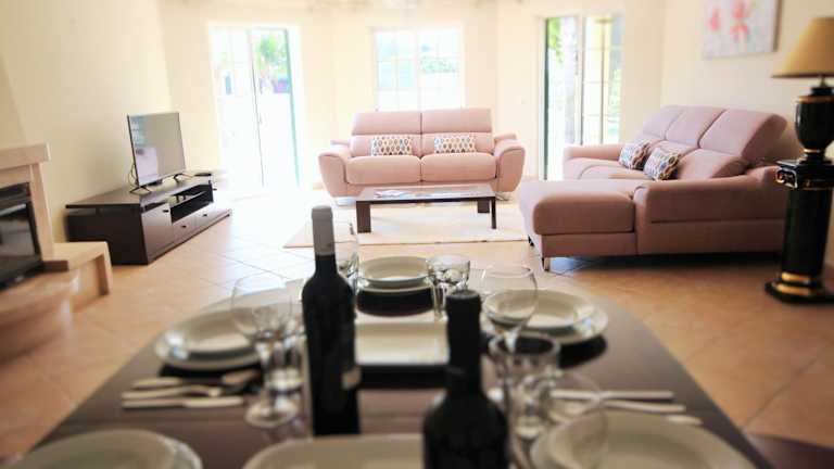 Die Villa umfasst 5 Schlafzimmer, ein Wohnzimmer und eine voll ausgestattete Küche mit Kühlschrank und Kaffeemaschine. Ein Badezimmer mit Bidet und Dusche ist ebenfalls vorhanden. Handtücher und Bettwäsche werden angeboten. Alle Zimmer sind klimatisiert und Nichtraucherzimmer.
