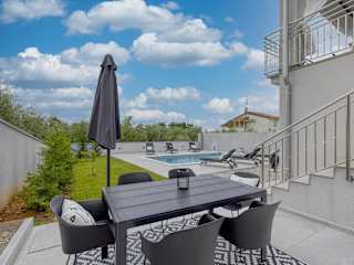 Verbringen Sie einen entspannten Urlaub in der Villa Blue Fuskulin in Poreč. Diese moderne Villa bietet Ihnen kostenfreies WLAN, einen eigenen Pool und Klimaanlage. Genießen Sie den Garten und kostenfreie Privatparkplätze. Die Villa verfügt über 4 Schlafzimmer, ein geräumiges Wohnzimmer, eine gut ausgestattete Küche und 2 Badezimmer. Von der Terrasse aus haben Sie einen herrlichen Blick auf den Pool. Die Umgebung bietet zahlreiche Möglichkeiten zum Radfahren. Besuchen Sie auch Sehenswürdigkeiten wie das Amphitheater Pula und den Aquapark Aquacolours Poreč. Der Flughafen Portorož ist nur 45 km entfernt.