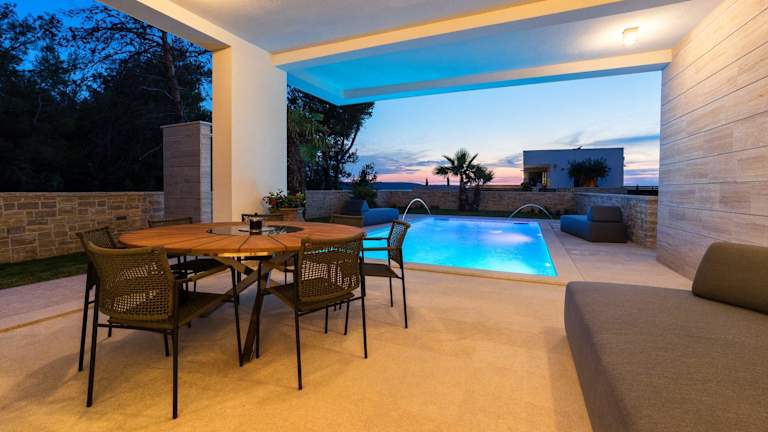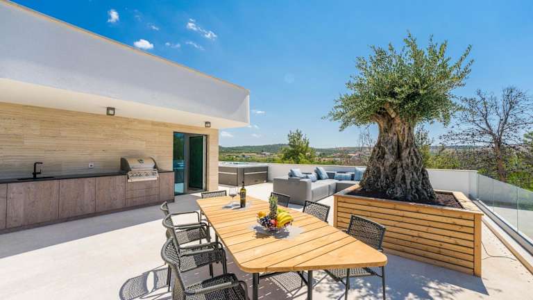 Die Villa umfasst 3 Schlafzimmer und 4 Badezimmer, die mit Bettwäsche und Handtüchern ausgestattet sind. Des Weiteren gibt es einen Essbereich, einen Flachbild-TV mit Kabelkanälen und eine Terrasse mit Meerblick. Die Zimmer sind klimatisiert und schallisoliert.