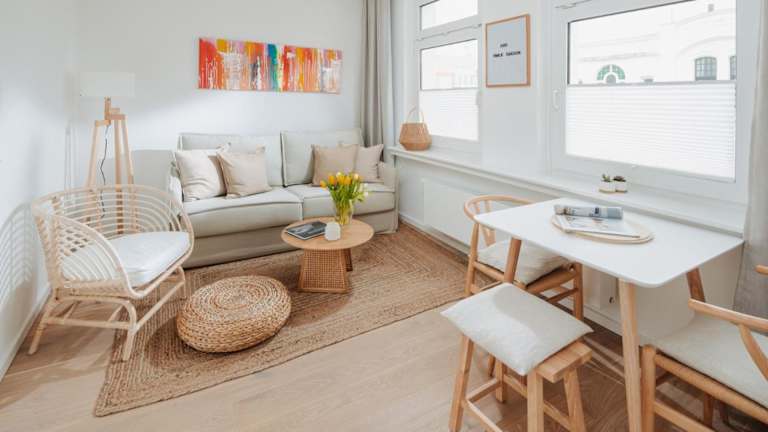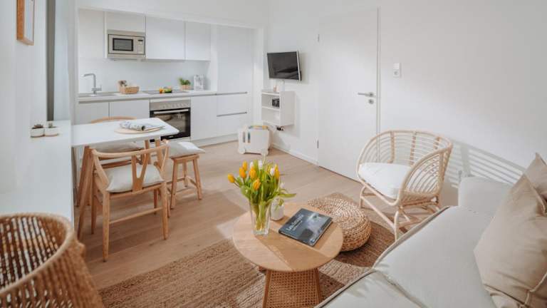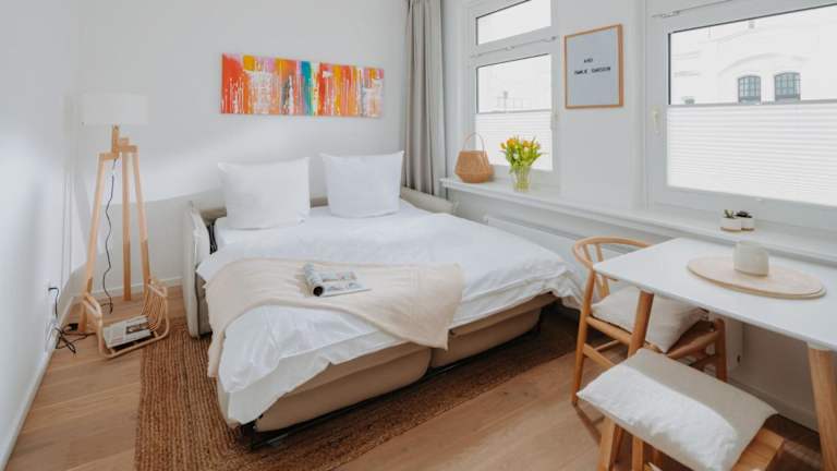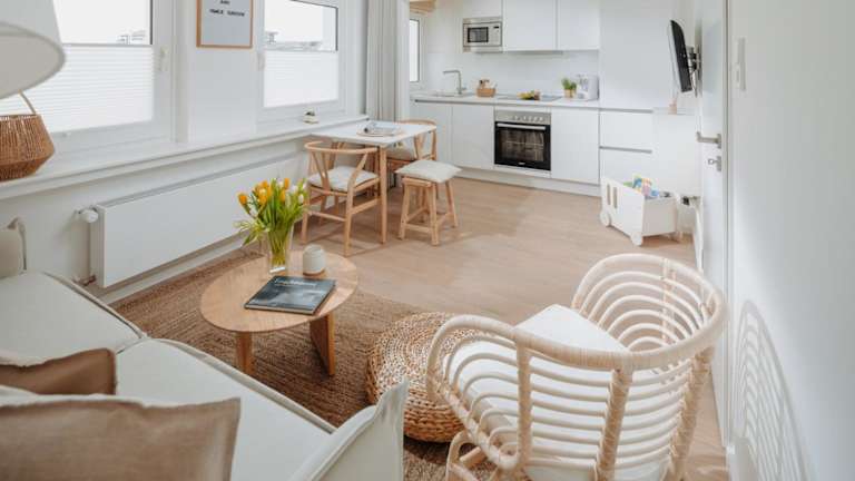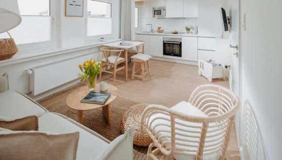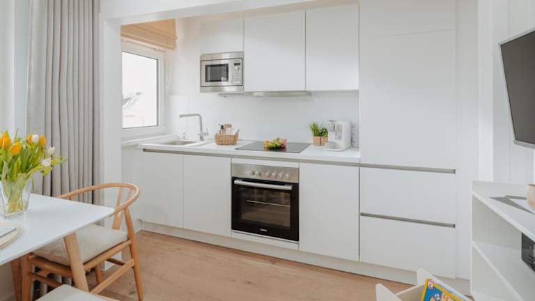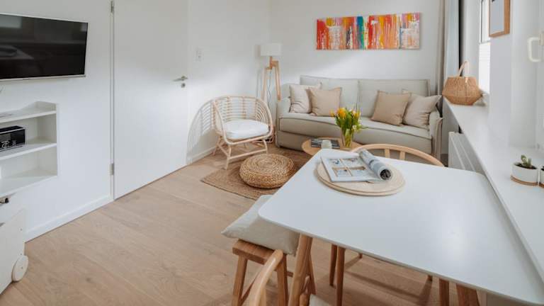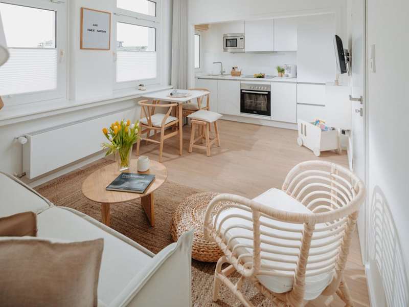 Die Ferienwohnung verfügt über 1 Schlafzimmer und ist eingerichtet mit einem TV mit Kabelkanälen. Die voll ausgestattete Küche beinhaltet einen Kühlschrank, Geschirrspüler, Waschmaschine, Ofen und Mikrowelle. Handtücher und Bettwäsche werden zur Verfügung gestellt.