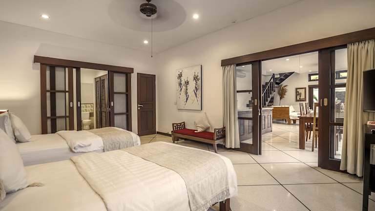 Die Villa umfasst 4 Schlafzimmer, ein Wohnzimmer und eine voll ausgestattete Küche mit Kühlschrank. Drei Badezimmer mit Dusche und Haartrockner sind ebenfalls vorhanden. Handtücher und Bettwäsche werden bereitgestellt. Die Villa ist klimatisiert und bietet Gästen Annehmlichkeiten wie WLAN sowie Nichtraucherzimmer.