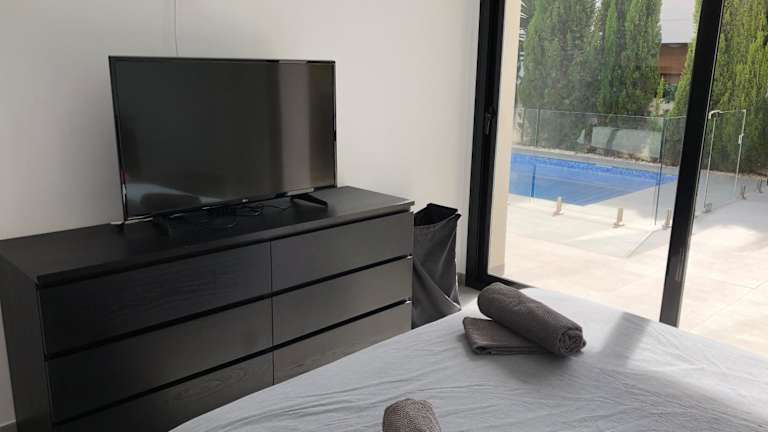 Die Villa ist mit 4 Schlafzimmern ausgestattet und bietet eine Küche mit Kühlschrank und Geschirrspüler. Ein Flachbild-TV und ein geräumiger Sitzbereich gehören ebenfalls zur Ausstattung. Es gibt 3 Badezimmer, die mit einer Dusche ausgestattet sind. Handtücher und Bettwäsche werden bereitgestellt.
