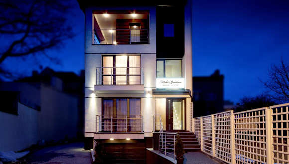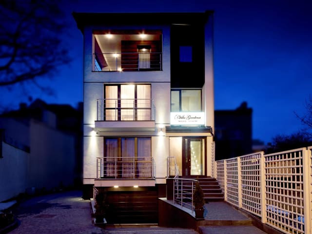 Die Villa Gardena befindet sich in einem ruhigen Villenviertel in Gdynia, nur 650 m vom Strand an der Ostsee entfernt. Das Einkaufszentrum Klif liegt in einer Entfernung von 200 m, und der Bahnhof Gdynia Orłowo ist 300 m entfernt.