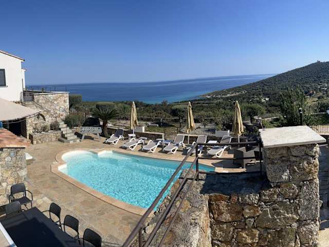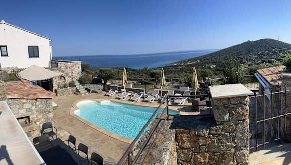 Die Unterkunft Villa Ghjunchitu - Vue mer et Piscine privée proche de l'ile rousse bietet eine heimelige Atmosphäre mit einem saisonalen Aussenpool, einem Garten und einer Terrasse.