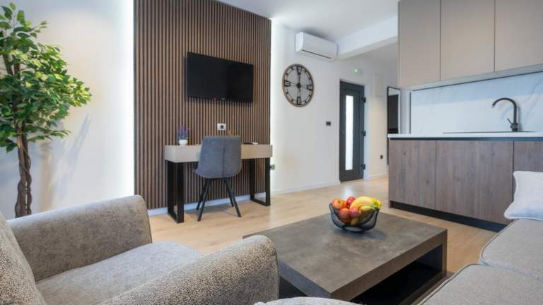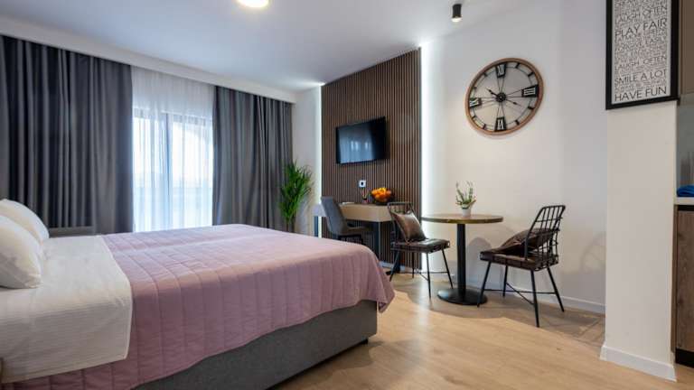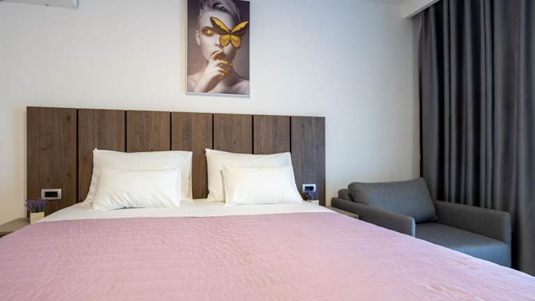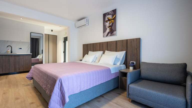 Alle Zimmer in der Unterkunft sind mit einer Klimaanlage, einem Kleiderschrank, einer Terrasse mit Meerblick sowie einem eigenen Badezimmer ausgestattet. Die Zimmer bieten zudem einen Flachbild-TV, Bettwäsche, Handtücher und einen Kühlschrank. Nichtraucherzimmer und schallisolierte Zimmer sind ebenfalls vorhanden.