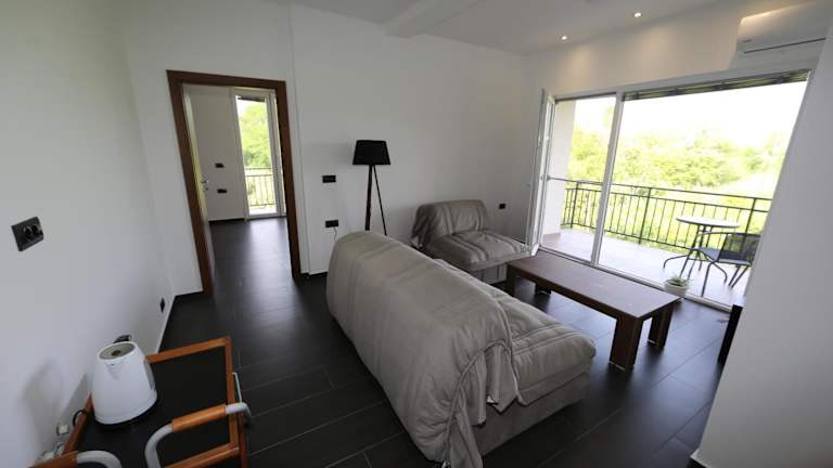 Die Zimmer der Villa Goriza Prestige sind mit einer Klimaanlage, einem Kleiderschrank und einem Balkon ausgestattet, der einen herrlichen Bergblick bietet. Die Wohneinheiten verfügen über eine Terrasse mit Meerblick, ein eigenes Badezimmer, einen Flachbild-TV sowie über Bettwäsche und Handtücher. Jedes Zimmer hat zudem einen Kühlschrank.