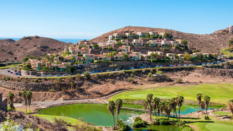 Berge und Vulkankrater umgeben das Golfresort und mit dem Auto sind es circa 10 Minuten bis ans Meer, den Strand und ins Touristenzentrum Maspalomas. Der Ort Maspalomas ist bekannt für seinen kilometerlang weißen Sandstrand und seine spektakulären Sanddünen. Dort finden sie auch viele Restaurants und Geschäfte. Ein umfangreiches Freizeitangebot lässt keine Langeweile aufkommen (z. B. Wassersport, Ausflüge über die Insel, Rundflüge, Autovermietung, Motorrad- und Jeepverleih uvm.). Desweiteren bietet Maspalomas am Abend ein einzigartiges Ambiente mit Casino, Shows, Clubs, Kneipen und Pubs .