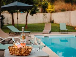 Die Villa besteht aus zwei Schlafzimmern, einem Wohnzimmer und einer voll ausgestatteten Küche mit Kühlschrank und Kaffeemaschine. Es stehen zwei Badezimmer mit Bidet und Dusche zur Verfügung. Handtücher und Bettwäsche werden bereitgestellt. Die Unterkunft bietet auch eine Sonnenterrasse, was zu einer heimeligen Atmosphäre beiträgt.