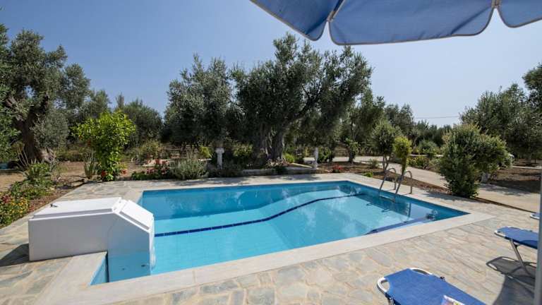 Die Villa in Crete near Beach and Olive Groves bietet Übernachtungsmöglichkeiten mit kostenloser Internetverbindung über Wifi und einer Klimaanlage. Die Anlage verfügt über einen Garten mit Terrasse sowie einen Aussenpool und Grillmöglichkeiten.