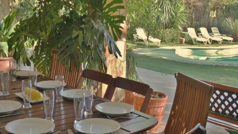 Die Villa umfasst 6 Schlafzimmer und 2 Badezimmer, ausgestattet mit Dusche und Badewanne. Zusätzlich sind eine Küche mit Kühlschrank, Geschirrspüler und Ofen sowie ein Wohnzimmer mit Sitzgelegenheiten und Essbereich vorhanden. Handtücher und Bettwäsche werden zur Verfügung gestellt.