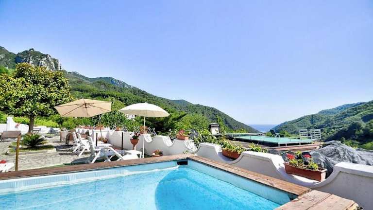 Verbringen Sie einen entspannten Aufenthalt in der Villa Inn Costa in Tramonti, Kampanien. Mit kostenfreiem WLAN, einem saisonalen Außenpool und Grillmöglichkeiten bietet die Unterkunft alles für einen angenehmen Aufenthalt. Die klimatisierten Unterkünfte verfügen über Terrassen, Flachbild-TVs und private Badezimmer. Genießen Sie die ruhige Atmosphäre im Garten und erkunden Sie die umliegenden Sehenswürdigkeiten wie die Kathedrale von Amalfi und den Hafen von Amalfi.