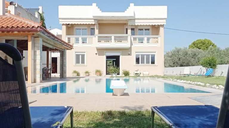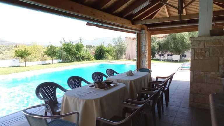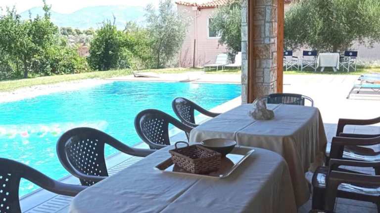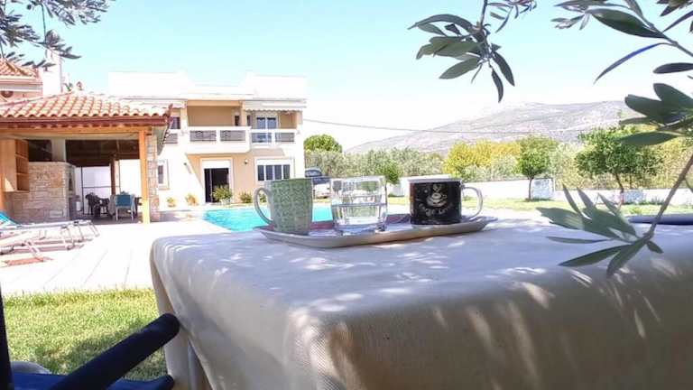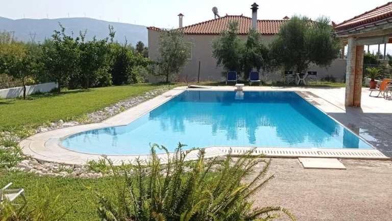 Die Unterkunft Villa IRENE Evia ist eine geräumige Villa mit einem eigenen Pool und einer einladenden Terrasse. Sie bietet Übernachtungsmöglichkeiten für bis zu vier Schlafzimmer und befindet sich in einer angenehmen Umgebung. Die Villa hat eine klimatisierte Ausstattung und wird privat vermietet. Es werden keinerlei Feiern wie Junggesellen-/Junggesellinnenabschiede gestattet.