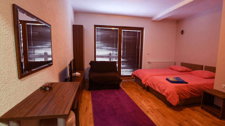 Die Villa 'Iva' liegt im malerischen Mavrovo-Nationalpark, der für seine atemberaubende Naturschönheit und zahlreichen Freizeitmöglichkeiten bekannt ist. Die Unterkunft befindet sich in der Nähe von Winteraktivitäten, mit direktem Zugang zur Skipiste. In der Umgebung erwarten die Gäste mehrere Sehenswürdigkeiten, darunter die Klöster Sveti Jovan Bigorski und Sveti Gjorgji Pobedonosec, die sich in einem Umkreis von 48 km befinden. Der nächstgelegene Flughafen ist der Flughafen Ohrid, welcher 102 km entfernt ist.