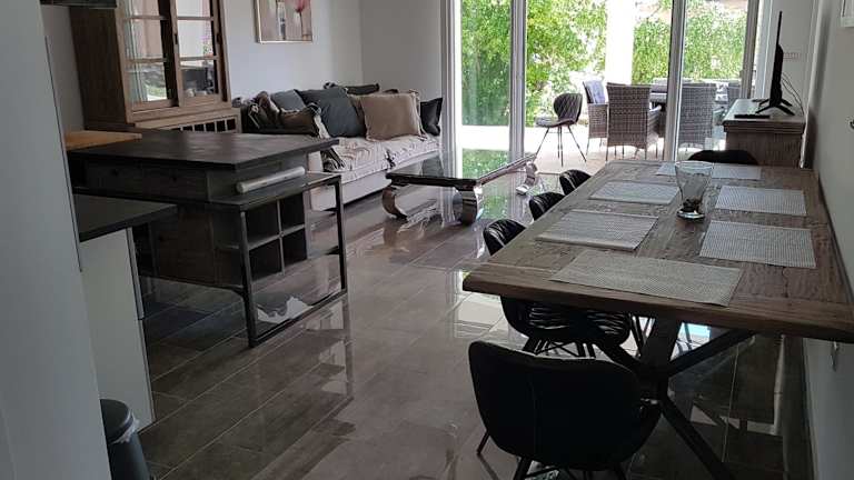 Die Unterkunft Villa Iva bietet eine voll ausgestattete Küchenzeile mit Kühlschrank, Geschirrspüler, Ofen, Mikrowelle und Herdplatte. Eine Kaffeemaschine sowie ein Wasserkocher sind ebenfalls vorhanden. Zudem gibt es die Möglichkeit, einen Grill zu nutzen.