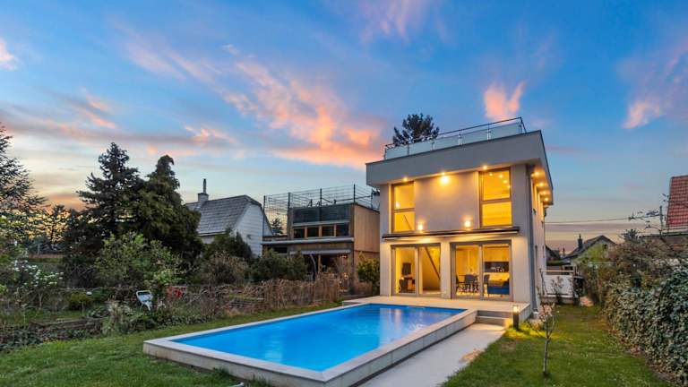 Die Villa Jäger bietet Übernachtungsmöglichkeiten in einer heimeligen Atmosphäre mit einem eigenen Pool und Stadtblick. Die Unterkunft verfügt über eine Terrasse und einen Garten mit Grillmöglichkeiten.