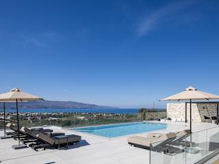 Die Villa Kafkales Maleme in Maleme bietet eine luxuriöse Unterkunft mit atemberaubendem Meerblick und privatem Pool. Die Villa verfügt über drei Schlafzimmer, ein geräumiges Wohnzimmer und eine voll ausgestattete Küche. Entspannen Sie im Whirlpool und genießen Sie die Annehmlichkeiten dieser exklusiven Unterkunft.