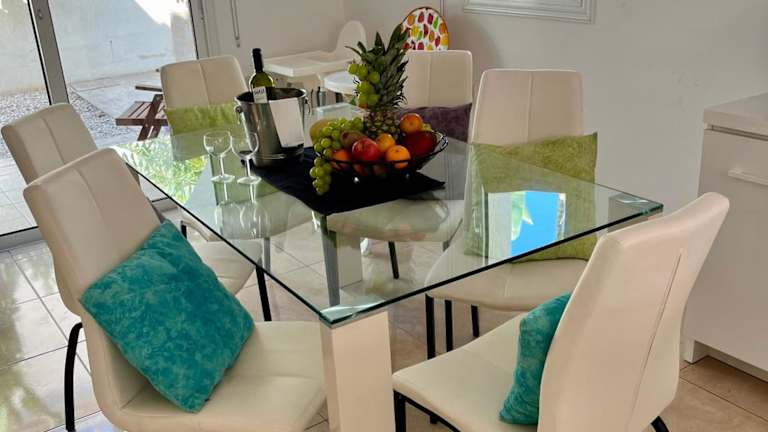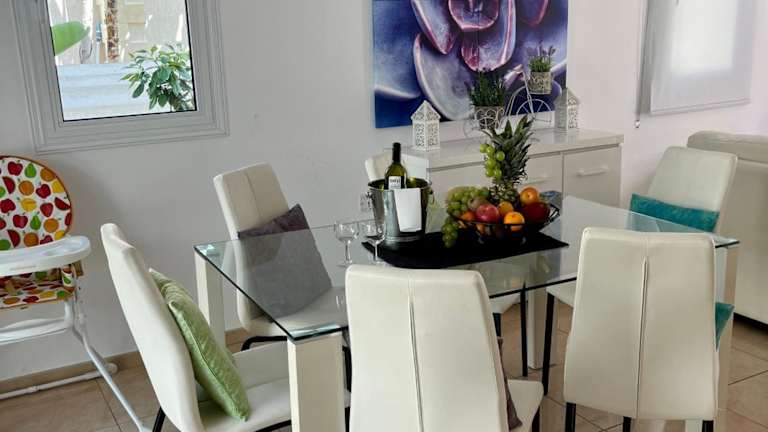 Die Villa beinhaltet drei Schlafzimmer, ein Wohnzimmer und eine voll ausgestattete Küche mit Kühlschrank und Wasserkocher. Es gibt drei Badezimmer, die mit Dusche und Haartrockner ausgestattet sind. Handtücher und Bettwäsche werden bereitgestellt. Zudem können Gäste eine Terrasse nutzen.
