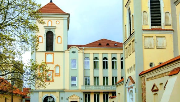 Guest house “Villa Kaunensis” is waiting for all those who want to stay in the historic building of the interwar period in the main square of Kaunas Old Town, near the Town Hall. Once upon a time, there was the Kaunas Priesthood Seminary and the Museum of Church Art. The adjoining The St. Trinity Church creates an extraordinary mood to this area; it seems to be filled with an aging atmosphere of sacredness. There are many tourist attractions and famous historical sites that allow you to admire valuable cultural heritage or museum exhibitions. Guests can enjoy in the cultural life of the city, which is constantly boiling on the Town Hall Square, and those who prefer the impressive natural shelter can take a walk in the park near the Nemunas and Neris river blossom, loved by the Kaunas citizens. Ancient Kaunas Castle (XIV century), the Bernardine Monastery complex (XV century), the heart of the Old Town - Archcathedral Basilica are within 3 minutes walking distance. “Villa Kaunensis” can accommodate up to 50 guests, who will be welcomed like family members here. All rooms have free Wi-Fi, a safe car park in closed area courtyard. Attractive prices, cozy privacy, rooms with view to the Old Town will complement your stay with pleasant moments.