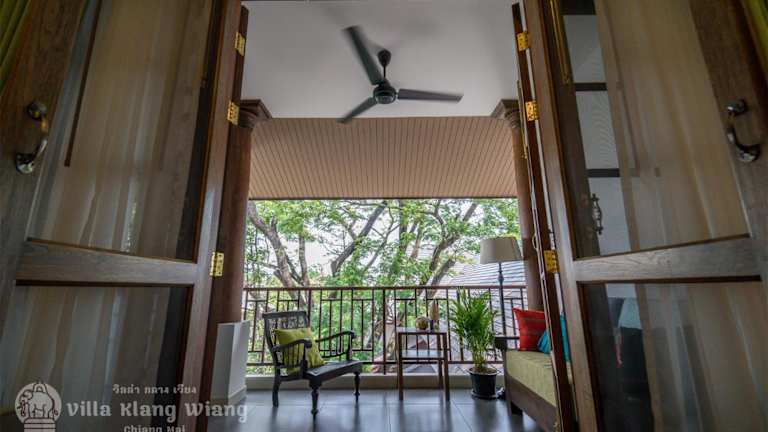 Die klimatisierten Zimmer der Villa Klang Wiang verfügen über einen Schreibtisch, einen Wasserkocher, einen Kühlschrank, einen Safe, einen Flachbild-TV, einen Balkon und ein eigenes Badezimmer mit einer Dusche. Jedes Zimmer ist zudem mit einem Kleiderschrank ausgestattet.