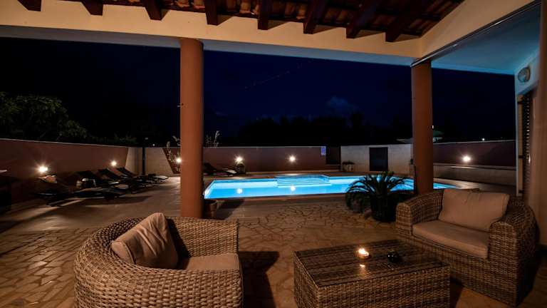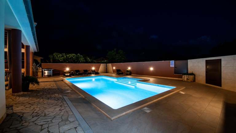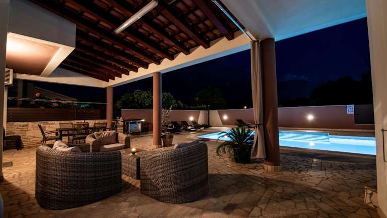 Die Villa Komel ist eine private Unterkunft mit Poolblick und bietet eine heimelige Atmosphäre. Diese Ferienunterkunft umfasst einen eigenen Garten, Grillmöglichkeiten und einladende Aussenbereiche wie eine Terrasse und einen saisonalen Aussenpool.