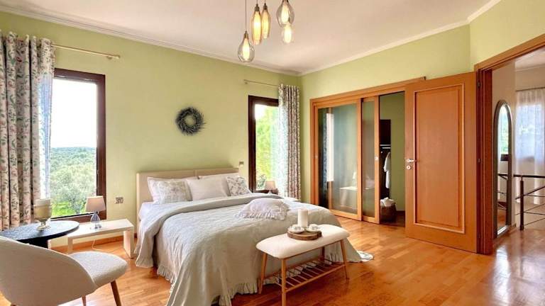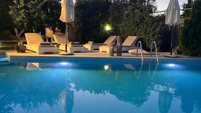 Die Villa hat drei Schlafzimmer, ein Wohnzimmer und eine voll ausgestattete Küche mit Kühlschrank und Kaffeemaschine. Es stehen zwei Badezimmer mit Dusche und kostenlosen Pflegeprodukten zur Verfügung. Handtücher und Bettwäsche werden bereitgestellt. Alle Zimmer sind klimatisiert und schallisoliert, was eine angenehme Bequemlichkeit gewährleistet.