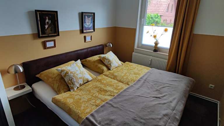 Die Ferienwohnung umfasst ein Schlafzimmer, ein Wohnzimmer sowie eine voll ausgestattete Küche mit Kühlschrank und Kaffeemaschine. Des Weiteren steht ein Badezimmer mit Dusche und Haartrockner zur Verfügung. Handtücher und Bettwäsche werden bereitgestellt.