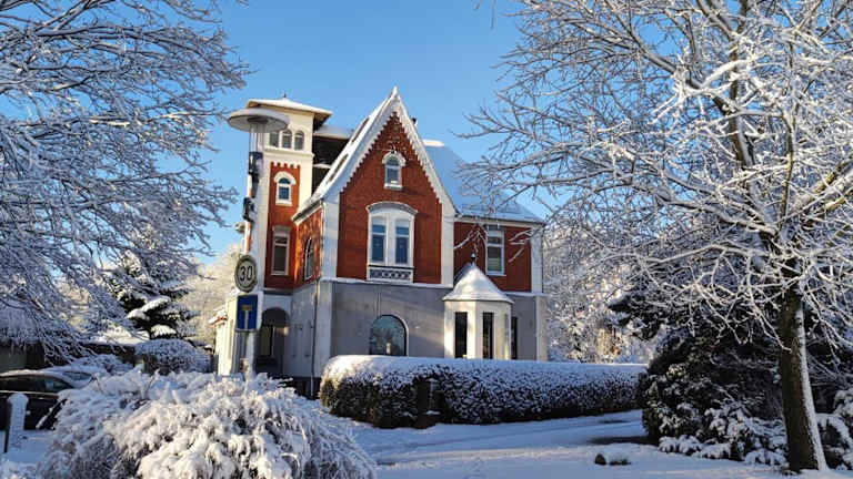 Die Villa Kunterbunt liegt in Drangstedt, etwa 19 km vom Hauptbahnhof Bremerhaven und 36 km von Alte Liebe entfernt. Die Umgebung bietet eine ruhige Lage am Waldesrand.