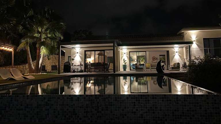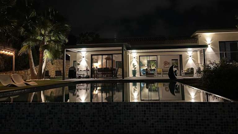 Die Unterkunft bietet drei Schlafzimmer sowie ein Wohnzimmer und eine voll ausgestattete Küche, die mit einem Kühlschrank und einer Kaffeemaschine ausgestattet ist. Die drei Badezimmer verfügen jeweils über eine Dusche und einen Haartrockner. Bettwäsche und Handtücher werden bereitgestellt, die nach Richtlinien der örtlichen Behörden gewaschen werden. Die Villa ermöglicht eine Klimatisierung und bietet Nichtraucherzimmer.