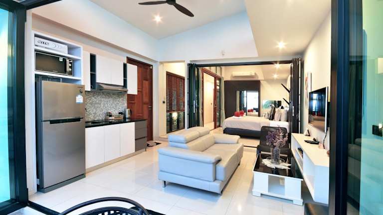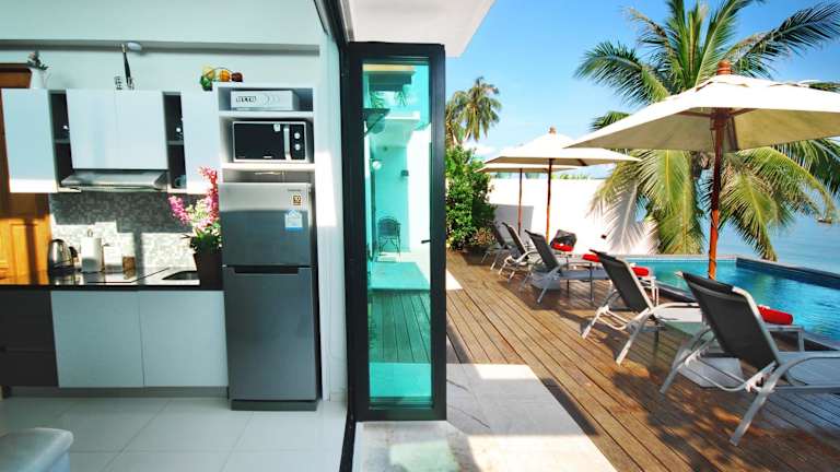 Die klimatisierten Villen sind mit einem Wohnbereich, einem Sofa, einem Flachbild-TV sowie einer Mikrowelle und einem Kühlschrank ausgestattet. Die Zimmer verfügen über ein eigenes Bad mit Dusche und kostenfreien Pflegeprodukten. Die Strandvilla mit 2 Schlafzimmern bietet Platz für bis zu 2 Kinder bis 12 Jahren und in anderen Zimmern kann ein Kind bis 5 Jahren untergebracht werden.