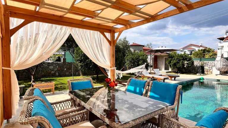 Die Villa Latanya befindet sich in einer malerischen Umgebung mit Bergblick. Sie liegt in der Nähe von Yachthafen Fethiye, ungefähr 47 km entfernt, und nur 3 km vom Flughafen Dalaman.