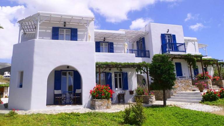 Die Villa Le Grand Bleu befindet sich weniger als 300 m vom Strand Katapola und 1,2 km vom Strand Kato Akrotiri entfernt. Zudem liegt die Unterkunft etwa 1,6 km vom Strand Agios Panteleimonas sowie 8 km vom Kloster Panagia Hozoviotissa. Der Hafen Katapola ist 900 m entfernt. Der nächstgelegene Flughafen ist der Flughafen Santorin, welcher sich 86 km von der Unterkunft entfernt befindet.