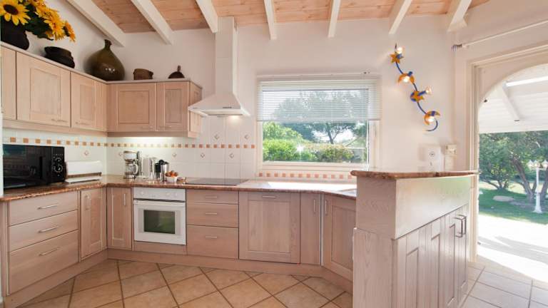 Die Villa verfügt über zwei Schlafzimmer, ein Wohnzimmer und eine voll ausgestattete Küche mit Kühlschrank und Kaffeemaschine. Ein Badezimmer mit Dusche und Haartrockner ist ebenfalls vorhanden. Handtücher und Bettwäsche werden bereitgestellt, und die Unterkunft ist klimatisiert.