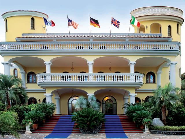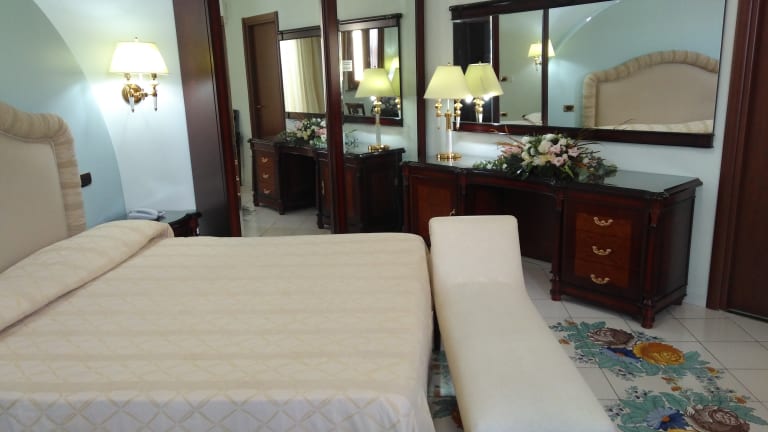 Die meisten der komfortablen Zimmer bieten einen Balkon oder eine Terrasse mit Blick auf den Park oder den Golf von Neapel.