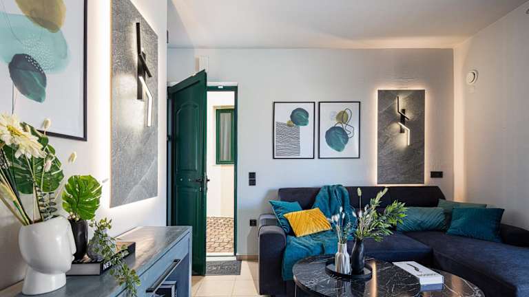 Die Villa Lea befindet sich in schöner Umgebung mit Gartenblick. Der Strand Peristeras ist nur 1,4 km entfernt. Die Sehenswürdigkeiten, wie das Archäologische Museum von Rethymno (ungefähr 20 km) und das Museum Antikes Eleftherna (44 km), sind in erreichbarer Nähe. Der Flughafen Chania ist 50 km entfernt.