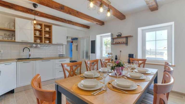 Die Villa verfügt über 4 Schlafzimmer, ein Wohnzimmer und eine gut ausgestattete Küche mit Geschirrspüler und Ofen. Handtücher und Bettwäsche sind ebenfalls verfügbar.