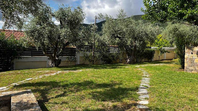 Die Villa Liana befindet sich in Soúrpi, umgeben von einer malerischen Natur und bietet direkten Zugang zu eigenem Strandbereich. Die Lage ermöglicht verschiedene Aktivitäten wie Windsurfen, Angeln und Velofahren.