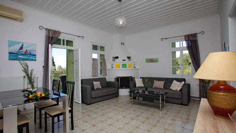 Die Villa Liogerma erstreckt sich über 2 Etagen und ist geschmackvoll eingerichtet. Sie verfügt über Fliesenböden, weiße Wände und eine gemütliche Atmosphäre. Die Villa bietet 2 separate Schlafzimmer, eine voll ausgestattete Küche, ein Wohnzimmer mit Kamin und einen Essbereich. Zur weiteren Ausstattung gehören eine Waschmaschine, eine Mikrowelle, ein Flachbild-Sat-TV und ein DVD-Player. Es gibt auch 2 Badezimmer mit Dusche und ein zusätzliches WC.