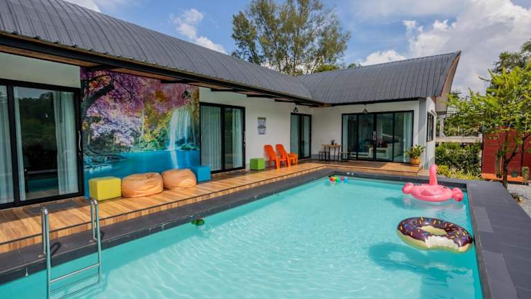Die Villa loved beach AO Nam Mao krabi bietet Übernachtungsmöglichkeiten direkt am Strand und verfügt über eine Terrasse sowie kostenfreies Wifi. Die Villa hat überdies einen eigenen Pool und bietet viel Platz für Gäste.